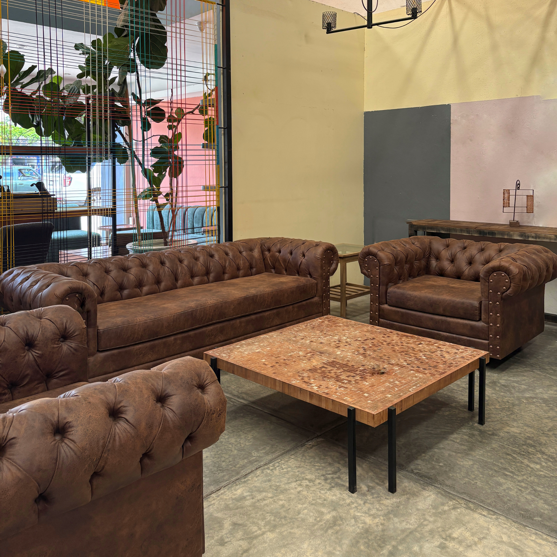 La Sala Chester es la máxima expresión de elegancia clásica. Con su icónico capitoné y líneas atemporales, aporta carácter y distinción a cualquier espacio. Fabricada de manera artesanal, combina estructura robusta con tapizado en tela o piel sintética de alta calidad. Ideal para salas principales, oficinas o áreas de recepción con un toque sofisticado.