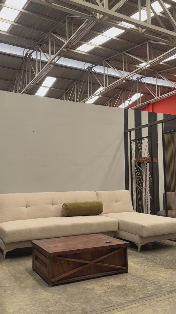 La Sala New combina el sofá cama matrimonial y el individual para formar un conjunto modular versátil y moderno. Ambos cuentan con un mecanismo de 3 posiciones que permite convertirlos en sofá, reposet o cama. Al acostarlos y unirlos, se crea una cama King Size ideal para recibir invitados o disfrutar de un descanso total.